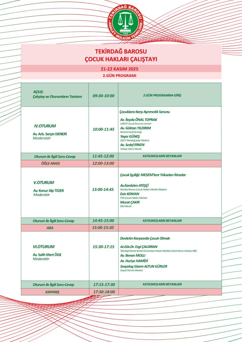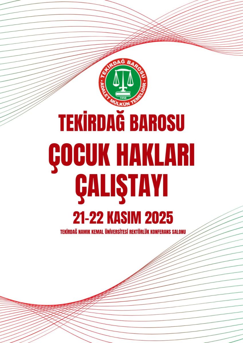 Tekirdağ Barosu Çocuk Hakları Çalıştayı, 21–22 Kasım 2025 tarihlerinde Namık Kemal Üniversitesi Rektörlük Konferans Salonu’nda gerçekleştirilecektir.