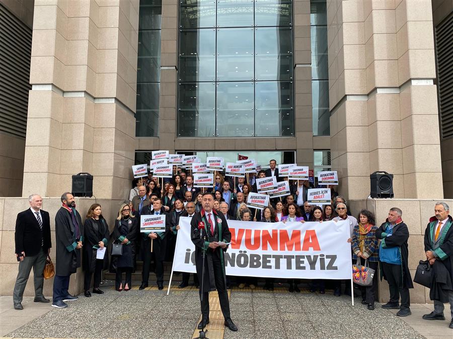 “ Birileri sustuğunda biz konuşuruz, birileri korktuğunda biz cesaret ederiz, birileri geri çekildiğinde biz ileri çıkarız. Çünkü biliyoruz, adalet susarsa zulüm başlar, savunma susturulursa toplum nefessiz kalır. Bugün bu ülkede adalet, hukukun üstünlüğü ilkesi yerine iktidarın keyfine göre yorumlanmak istenmektedir. Burada bir kez daha altını çizmek gerekir ki, yargının siyasallaştırılması büyük bir tehlikedir. Anayasa var ama uygulanmıyor. Mahkeme kararları var ama tanınmıyor. Bunu kabul etmek asla ama asla mümkün değildir. İşte bu yüzden biz avukatlar varız. Tarih boyunca her dönemde 'buradayız' diyen, haksızlık karşısında susmayan avukatlar oldular. Ve bugün de durum farklı değil. Çünkü biz ne emirle adalet isteriz ne de rızayla hukuk ararız. Biz özgür bir savunmayı, bağımsız bir yargıyı ve demokratik bir ülkeyi hedefliyoruz. Tam da bu noktada unutulmamalıdır ki, barolar yalnızca avukatların örgütü değildir. Barolar, topluma karşı sorumlulukları olan, yasadan kaynaklanan bir görevi yerine getiren kurumlardır. Bu nedenle, hukukun sustuğu yerde sözü; adaletin unutturulmak istendiği yerde direnci temsil ederler. Bu nöbet, bir yandan etkisizleştirilmeye çalışılan avukatlar için tutulurken;