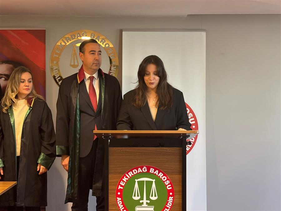 Avukatlık stajını tamamlayarak Avukatlık Ruhsatnamesi almaya hak kazanan Av. İlayda Sena Dinçsoy ve Av. Öykü Ünal’a ruhsatnameleri Baro Yönetim Kurulu huzurunda yapılan yemin töreni ile Baro Başkanımız Av. Egemen Gürcün tarafından takdim edildi. Aramıza yeni katılan meslektaşlarımıza Tekirdağ Barosu olarak başarılar dileriz. Törenin videosu için tıklayınız.