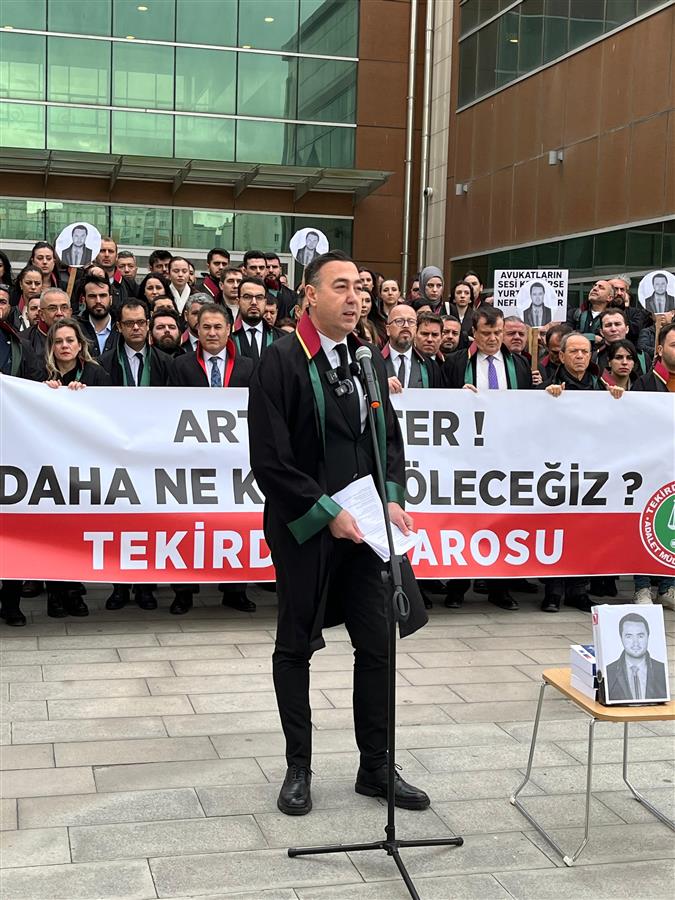 Tekirdağ Baro Başkanı Av. Egemen Gürcün açıklamasında; avukatların korkmak için değil, hakikatin sesi olmak ve adaleti savunmak için cübbe giydiğini belirterek, meslektaşlarının can güvenliğinin sağlanmasının hukuk devleti olmanın zorunlu bir gereği olduğunu dile getirdi. Bir avukatın öldürülmesiyle susturulmak istenenin yalnızca bir kişi değil, adaletin sesi olduğunu vurgulayan Gürcün, bu şiddetin normalleştirilmeyeceğini, unutulmayacağını ve unutturulmayacağını ifade etti.