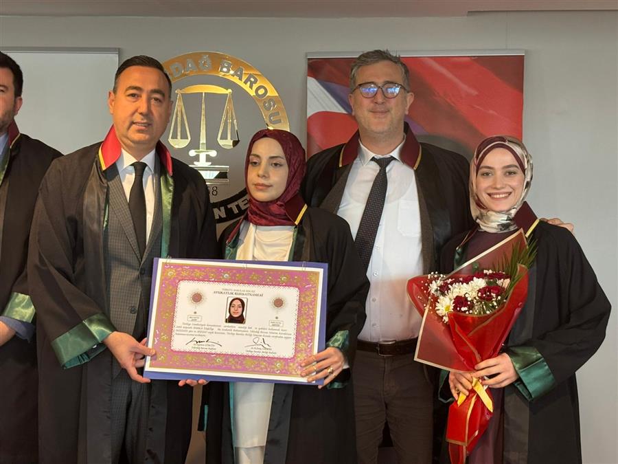 Avukatlık stajını tamamlayarak Avukatlık Ruhsatnamesi almaya hak kazanan Av. Damla Taşci, Av. Serkan Taşan, Av. Saliha Yaren Ertuğrul ve Av. Emir Özkuyucu’ya ruhsatnameleri Baro Yönetim Kurulu huzurunda yapılan yemin töreni ile Baro Başkanımız Av. Egemen Gürcün tarafından takdim edildi.