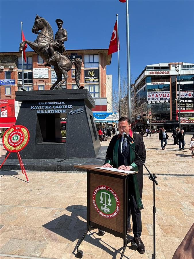 Süleymanpaşa, Çorlu ve Çerkezköy’de düzenlenen törenlerde, Baro Başkanı Av. Egemen Gürcün ve Yönetim Kurulu üyeleri tarafından Atatürk Anıtına çelenk sunumu gerçekleştirildi. Diğer ilçelerde ise törenler, ilçe temsilcilikleri öncülüğünde yapıldı.
