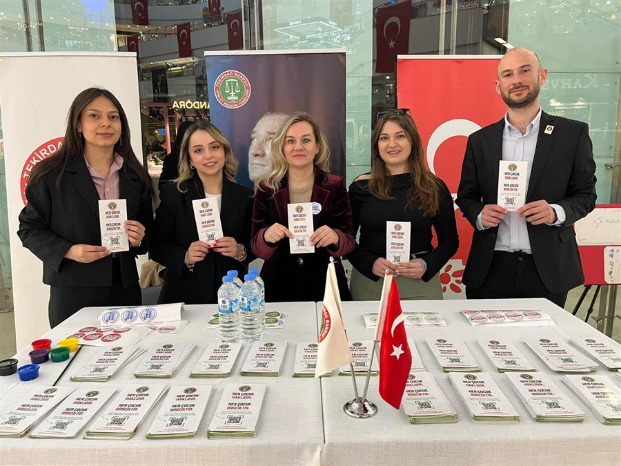 Çelenk sunma töreninin ardından, Tekirdağ Barosu Çocuk Hakları Komisyonu tarafından Tekira AVM ve Çorlu Masal Park’ta kurulan stantlarda çocuk haklarına ilişkin bilgilendirme broşürleri ile boyama kitapları ve çeşitli hediyeler dağıtılarak çocukların bayram sevincine ortak olundu. Çocuklarımızın şiddetten uzak, özgür, eşit ve haklarının güvence altına alındığı bir gelecekte, neşeyle ve umutla büyümeleri temennisiyle 23 Nisan Ulusal Egemenlik ve Çocuk Bayramı coşkuyla kutlandı.