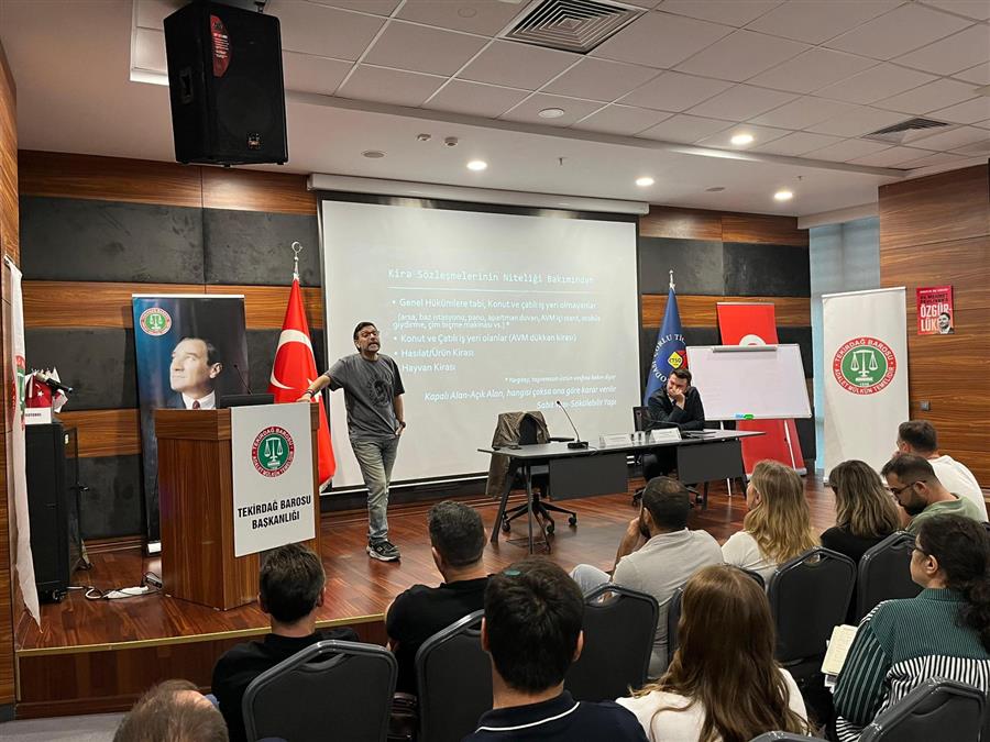 Türkiye Barolar Birliği ve Tekirdağ Barosu iş birliğiyle düzenlenen Meslek İçi Eğitim Seminerleri kapsamında, “Kira Tespit ve Tahliye Davaları” konulu program 27 Eylül 2025 Cumartesi günü Çorlu Ticaret Odası Batı Eğitim Salonu’nda gerçekleştirildi.