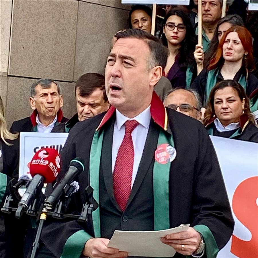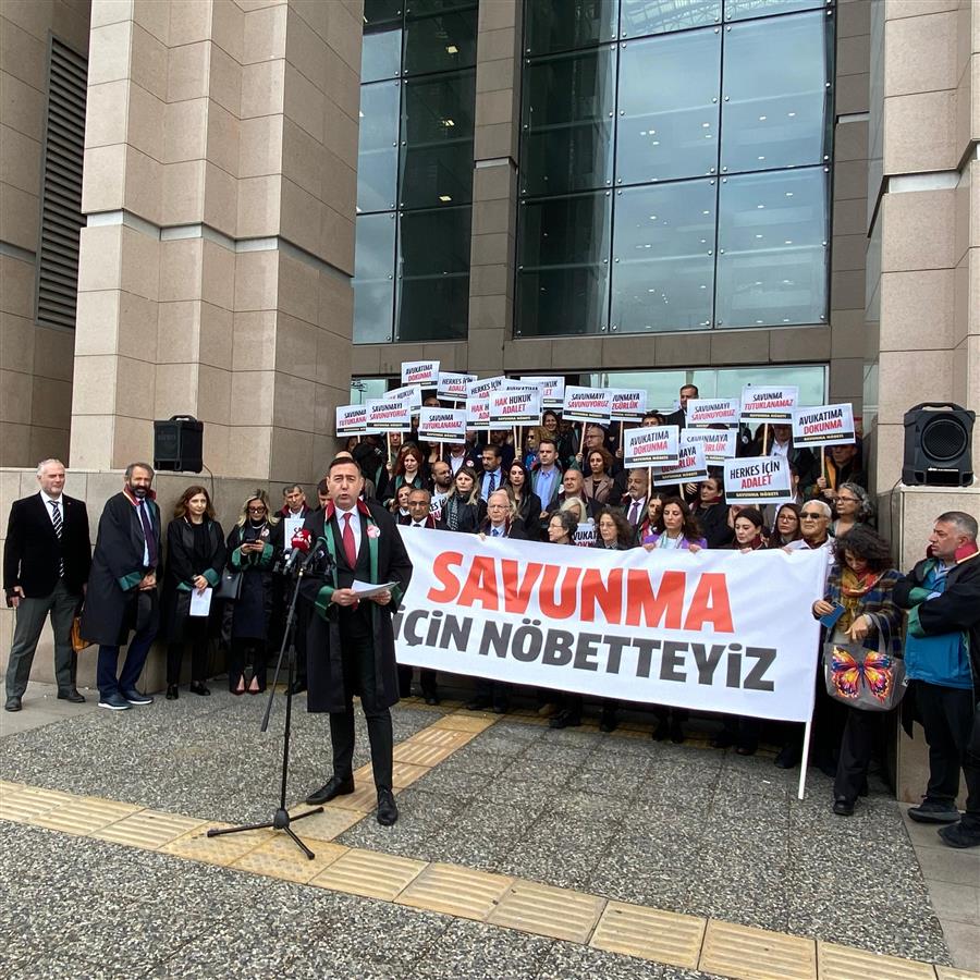 “ Birileri sustuğunda biz konuşuruz, birileri korktuğunda biz cesaret ederiz, birileri geri çekildiğinde biz ileri çıkarız. Çünkü biliyoruz, adalet susarsa zulüm başlar, savunma susturulursa toplum nefessiz kalır. Bugün bu ülkede adalet, hukukun üstünlüğü ilkesi yerine iktidarın keyfine göre yorumlanmak istenmektedir. Burada bir kez daha altını çizmek gerekir ki, yargının siyasallaştırılması büyük bir tehlikedir. Anayasa var ama uygulanmıyor. Mahkeme kararları var ama tanınmıyor. Bunu kabul etmek asla ama asla mümkün değildir. İşte bu yüzden biz avukatlar varız. Tarih boyunca her dönemde 'buradayız' diyen, haksızlık karşısında susmayan avukatlar oldular. Ve bugün de durum farklı değil. Çünkü biz ne emirle adalet isteriz ne de rızayla hukuk ararız. Biz özgür bir savunmayı, bağımsız bir yargıyı ve demokratik bir ülkeyi hedefliyoruz. Tam da bu noktada unutulmamalıdır ki, barolar yalnızca avukatların örgütü değildir. Barolar, topluma karşı sorumlulukları olan, yasadan kaynaklanan bir görevi yerine getiren kurumlardır. Bu nedenle, hukukun sustuğu yerde sözü; adaletin unutturulmak istendiği yerde direnci temsil ederler. Bu nöbet, bir yandan etkisizleştirilmeye çalışılan avukatlar için tutulurken;