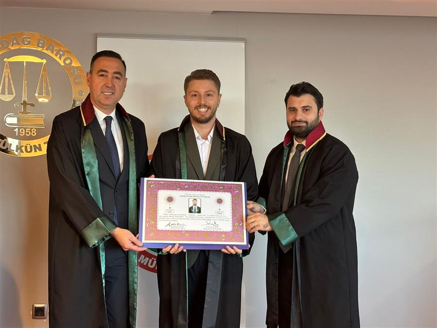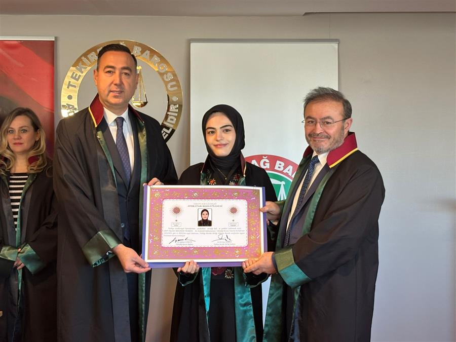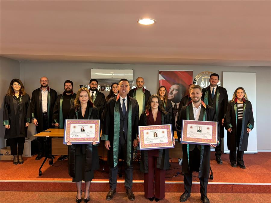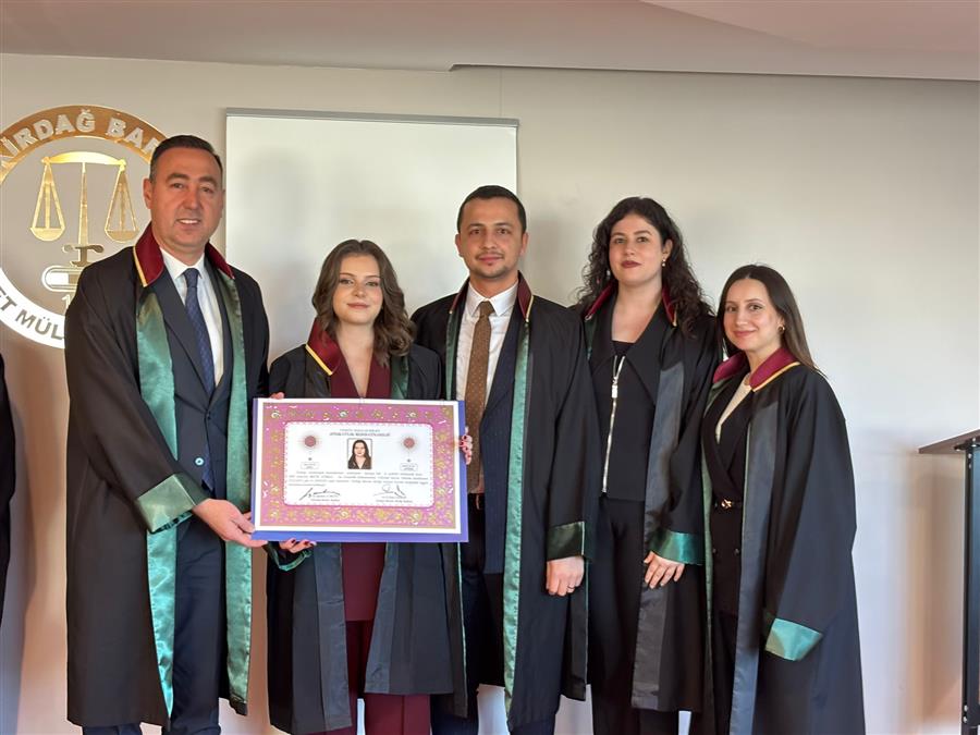 Avukatlık stajını tamamlayarak Avukatlık Ruhsatnamesi almaya hak kazanan Av. Neslihan Yelken, Av. Emine Gamze Duğan, Av. Dilara Benli, Av. Hilal Kılıçaslan, Av. Beste Gürel, Av. İlayda Akdoğan ve Av. İrfan Tuna Şen’e ruhsatnameleri Baro Yönetim Kurulu huzurunda yapılan yemin töreni ile Baro Başkanımız Av. Egemen Gürcün tarafından takdim edildi. Aramıza yeni katılan meslektaşlarımıza Tekirdağ Barosu olarak başarılar dileriz. Törenin videosu için tıklayınız.
