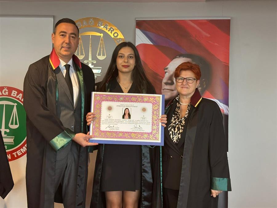 Avukatlık stajını tamamlayarak Avukatlık Ruhsatnamesi almaya hak kazanan Av. Damla Taşci, Av. Serkan Taşan, Av. Saliha Yaren Ertuğrul ve Av. Emir Özkuyucu’ya ruhsatnameleri Baro Yönetim Kurulu huzurunda yapılan yemin töreni ile Baro Başkanımız Av. Egemen Gürcün tarafından takdim edildi.